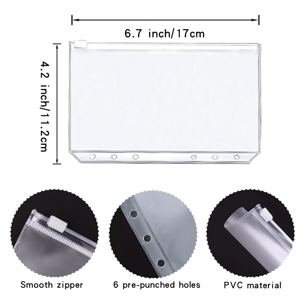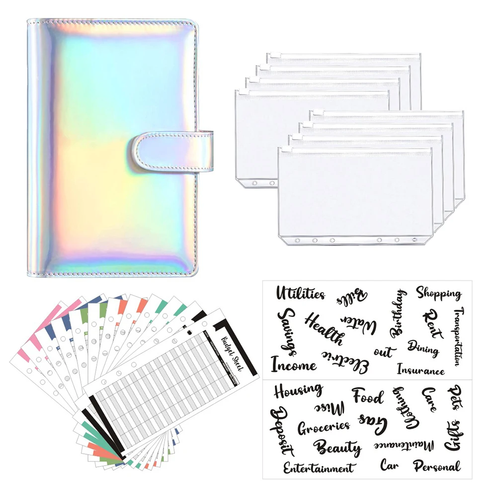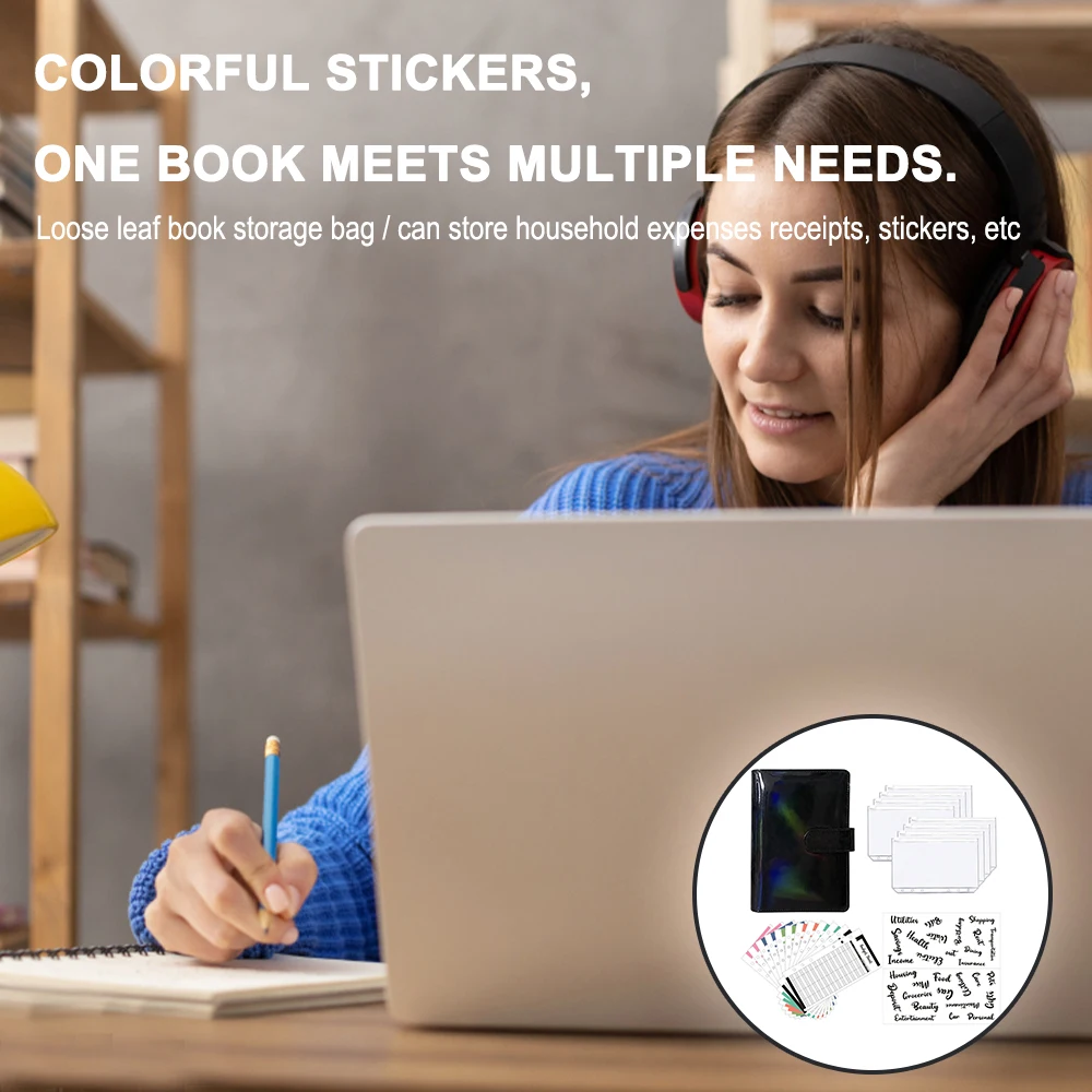 Carpeta de presupuesto colorida A6, sobres de efectivo para organizador de ahorro de dinero con bolsillos con cremallera, hojas de presupuesto y etiquetas autoadhesivas