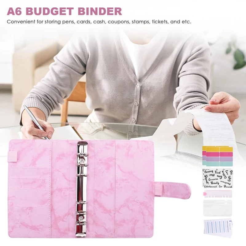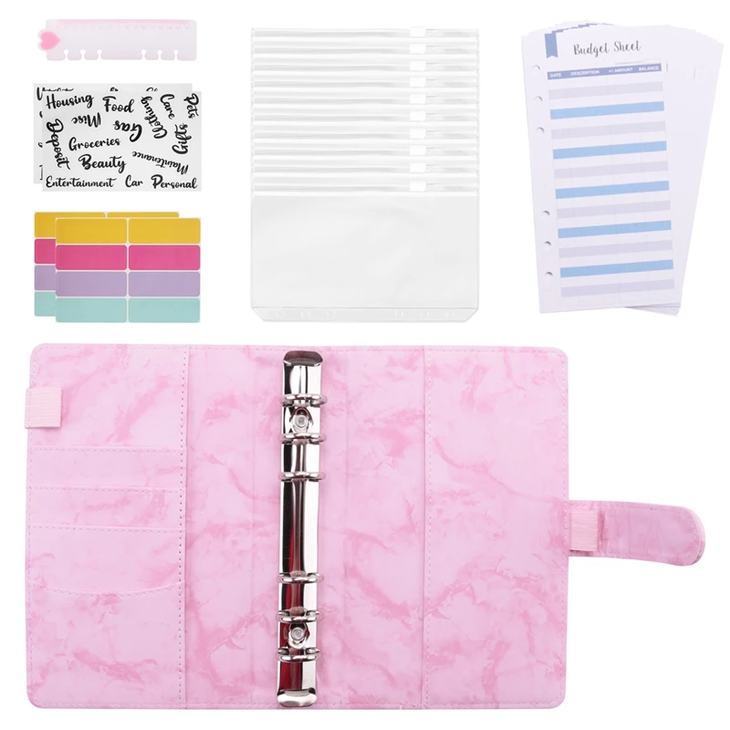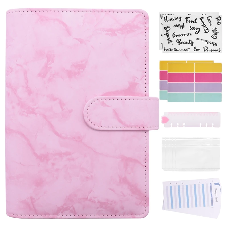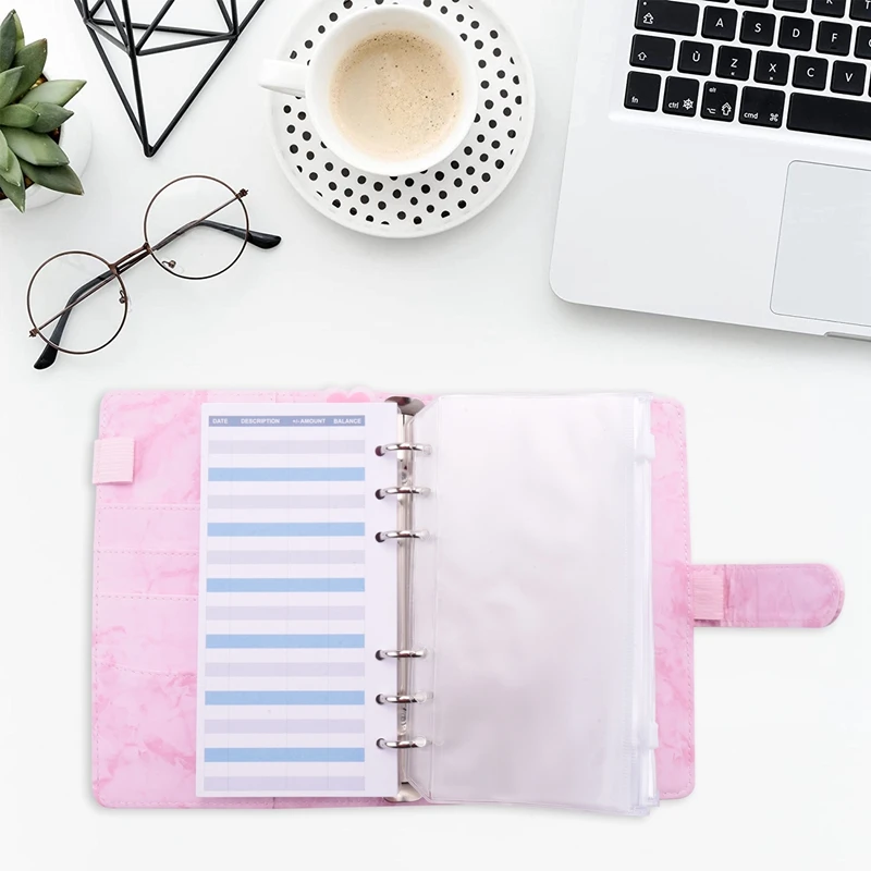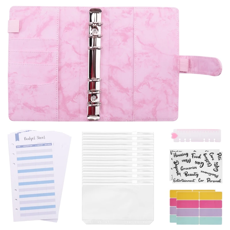 [Paquete de valor] 1 cubierta de carpeta de cuaderno de cuero PU A6, 10 bolsillos de carpeta de 6 agujeros A6 de, 12 hojas de presupuesto de piezas, 1 Regla, 2 pegatinas de artículos de presupuesto y 16 etiquetas autoadhesivas de 1, 2 etiquetas autoadhesivas de 1, 2 y 3, 1, 2 y 5. Paquete económico para satisfacer sus necesidades diarias