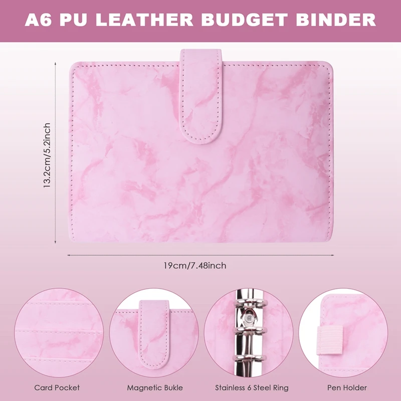 [Portátil y ligero] El tamaño de la carpeta A6 es de 7,48x5,2 pulgadas, se puede poner en bolsos, mochilas, maletas o escritorio; los bolsillos de la carpeta con cremallera A6 son de 6,9x4,1 pulgadas, el tamaño de las hojas de presupuesto de gastos es de 6,7x3,4 pulgadas, todas tienen un diseño de 6 agujeros, se pueden llenar en carpetas de 6 anillos A6