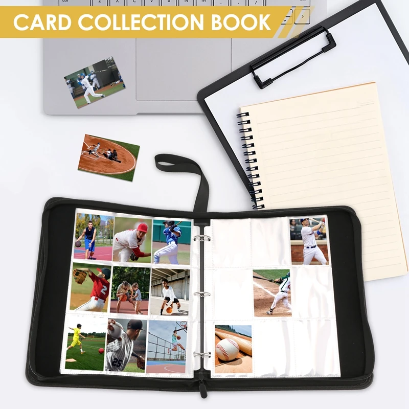Carpeta de tarjetas coleccionables, fundas para carpetas de tarjetas de béisbol con 9 bolsillos y cremallera, tarjetero para juego/fútbol/tarjeta de béisbol