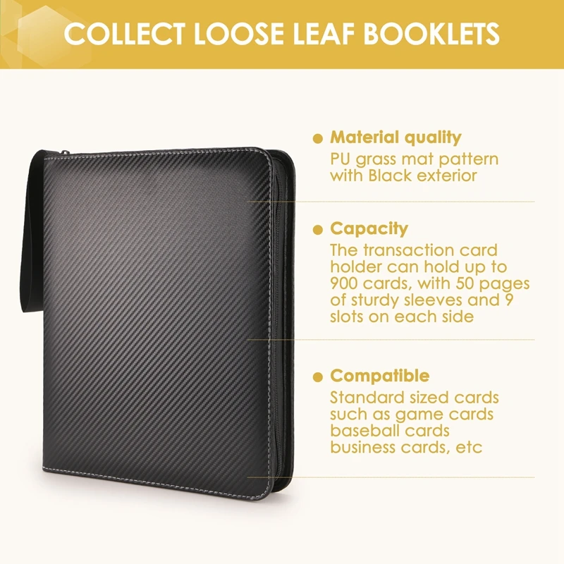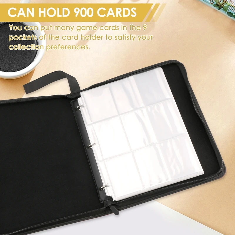 La carpeta de tarjetas coleccionables puede contener hasta 900 tarjetas y tiene 50 páginas de fundas resistentes con 9 ranuras en cada lado, por lo que puedes guardar muchas tarjetas de juego en el bolsillo de la carpeta de tarjetas para satisfacer tu pasatiempo de colección.