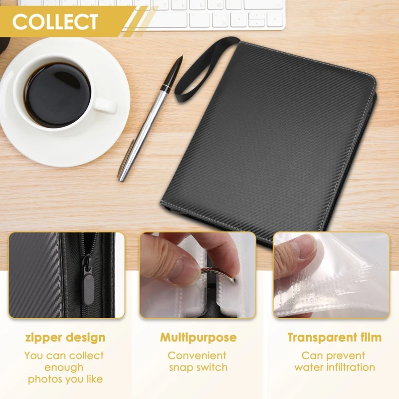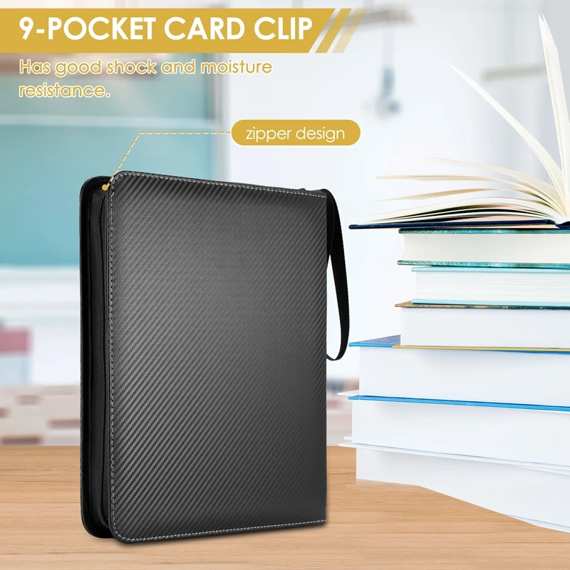 Los tarjeteros para tarjetas coleccionables están hechos de cuero PU de primera calidad, lo que evita que el agua penetre y facilita la eliminación de las manchas.Además, nuestra carpeta de tarjetas de bolsillo impermeable de 9 bolsillos tiene buena resistencia a golpes y humedad.