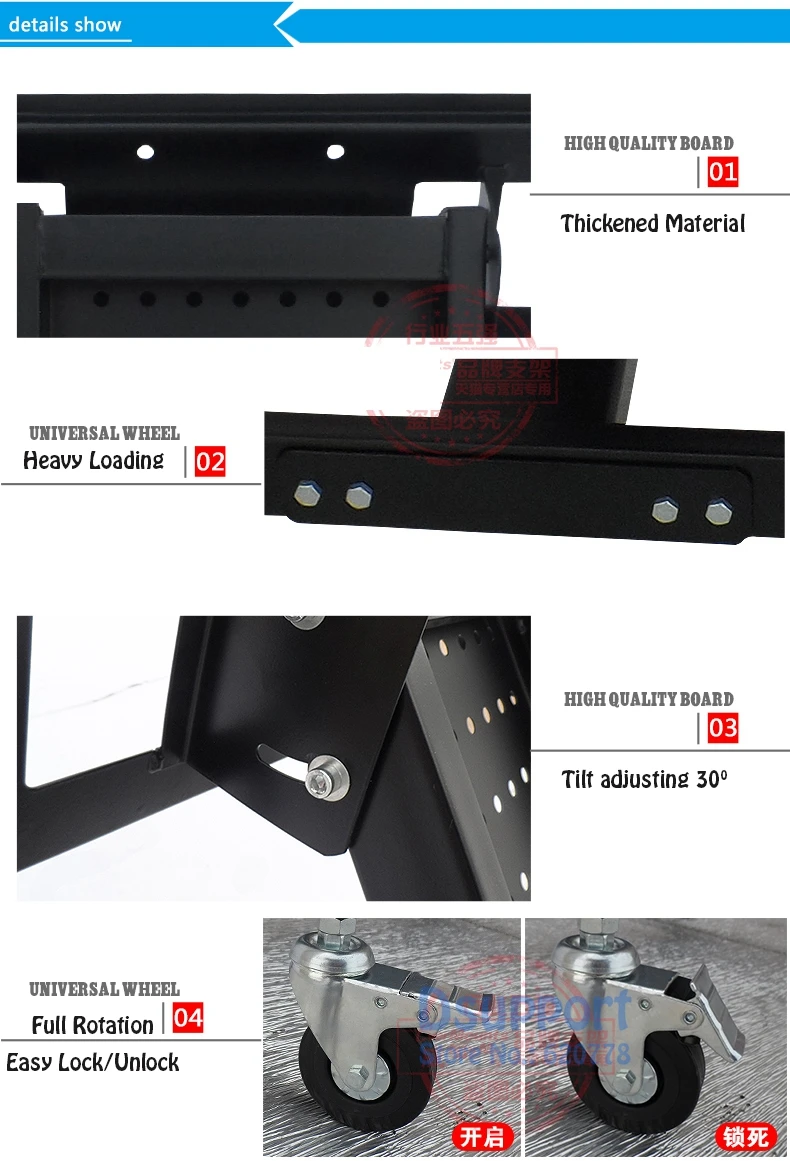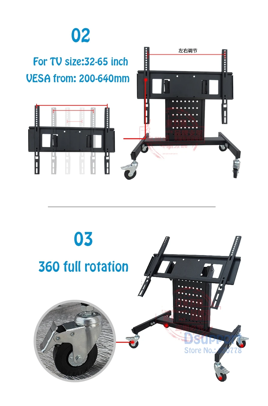 Comprar Carrito de montaje para TV rodante, soporte de baja altura para Monitor LCD LED, con pantalla de Plasma de 32-65 pulgadas, carga de 50 kg