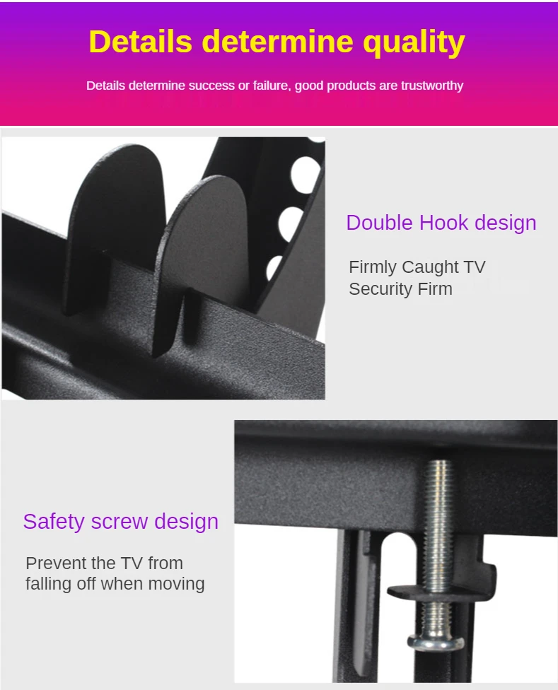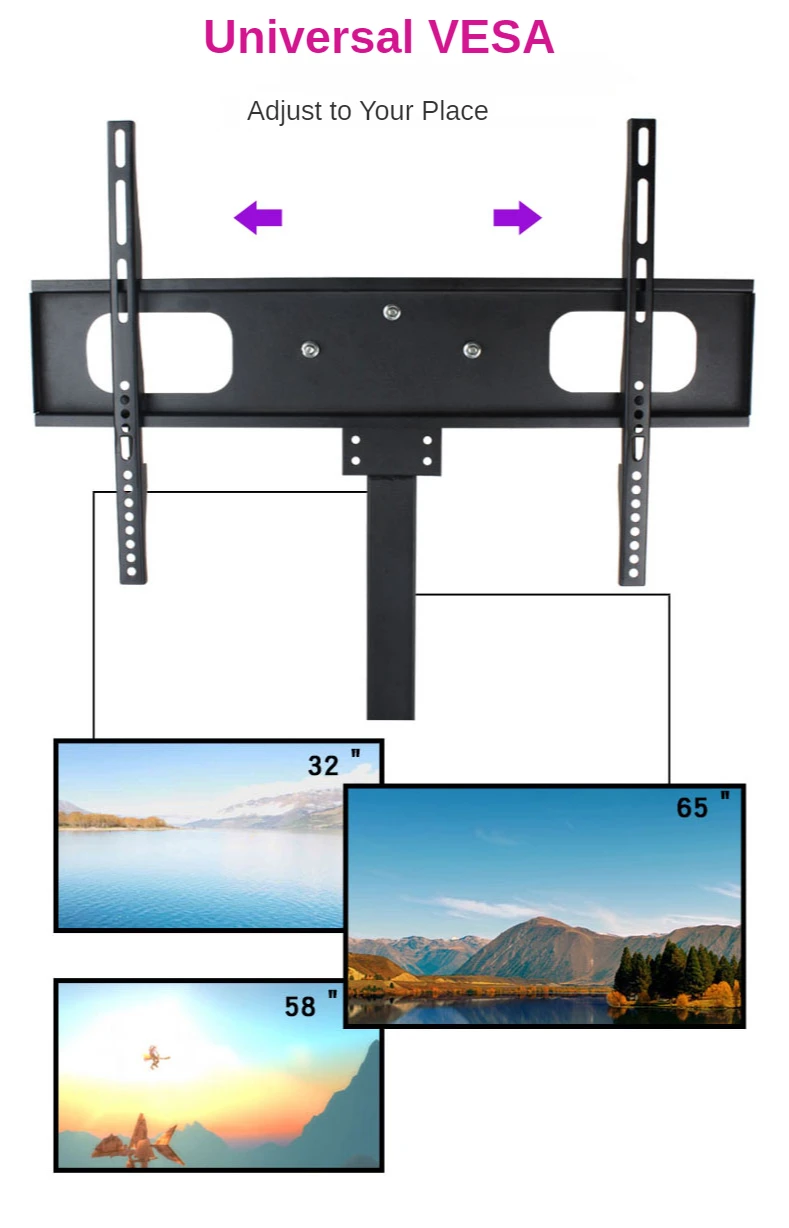 Se aplica a esos televisores: Adecuado para GELL, Sony, Xiaomi, LG, Hisense, Samsung, Philips, Sharp, Haier, Toshiba, Panasonic, etc. La mayoría de las marcas de TV (excepto televisores especiales con agujeros VESA)