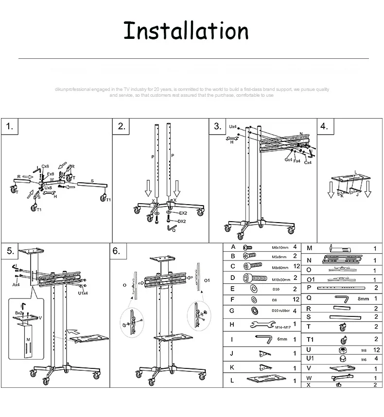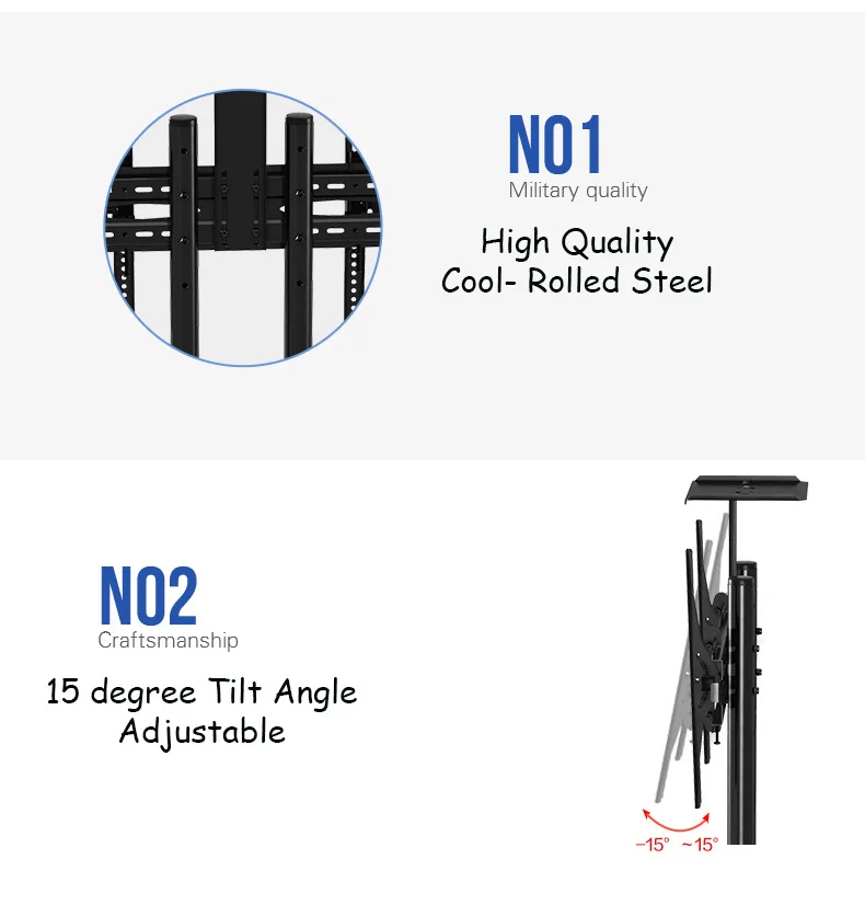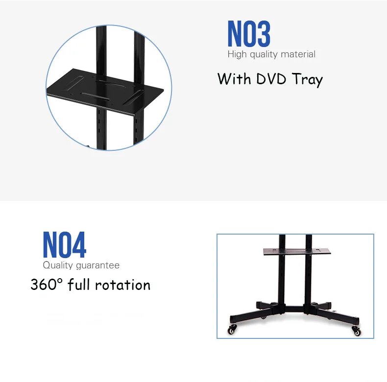 Carrito de TV Universal, soporte móvil de altura ajustable para TV de 32 a 65 pulgadas, LED, LCD, Plasma, con estante AV ajustable, soporte para cámara