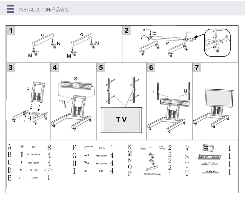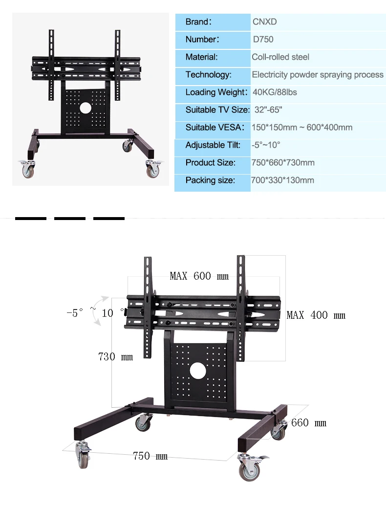 Se adapta a pantallas de 32 "a 65". Perfecto para el hogar o la oficina-Compatible con la mayoría de las pantallas planas LCD LED de 32 "a 65" que pesan hasta 88 libras con patrones VESA de 100x100mm a 400x400mm. La altura máxima del suelo al centro de la pantalla es de 730mm.