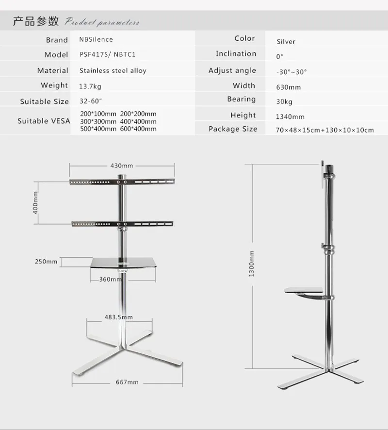 Este soporte puede admitir la mayoría de televisores de 32"-65" o más, debajo de dos medidas clave puede confirmar si este soporte es adecuado para usted, consulte el último de esta página para verificarlo antes de realizar el pedido, cualquier punto poco claro, póngase en contacto con nosotros.