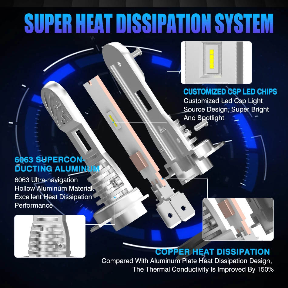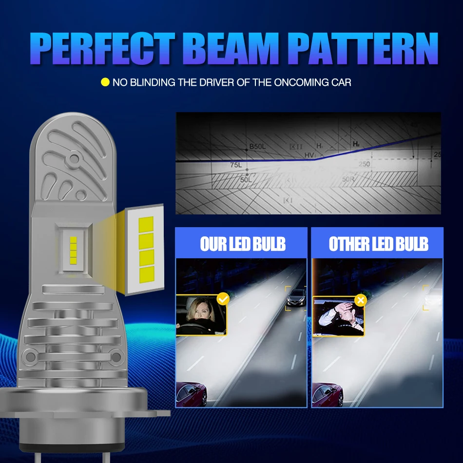 【Haz perfecto, sin manchas oscuras】 La bombilla de haz alto LED Carshark H7 utiliza un diseño de haz de halógeno 1:1 y una placa de cobre de chip ultrafina para garantizar una iluminación de 360 ° sin puntos negros. No haga la vista gorda ante el tráfico y los conductores que se aproximan, conducir de noche es más seguro