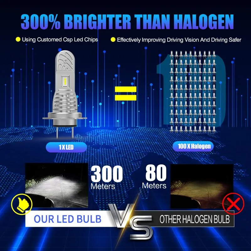 【CSP chips, brillo mejorado】 carshark H7 LED bombilla de haz bajo está diseñado con 8 Chips CSP, 6000K blanco frío, aproximadamente 3 veces más brillante que las bombillas halógenas de stock, lo que le permite ver más claramente y más lejos en la carretera, mejorar la visibilidad por la noche