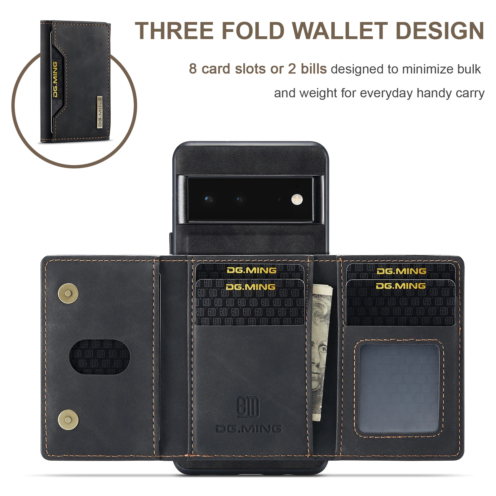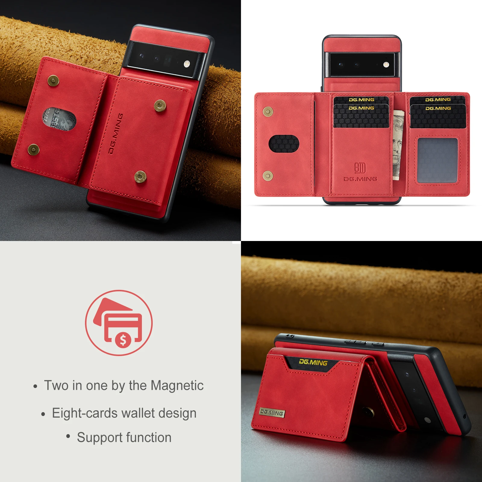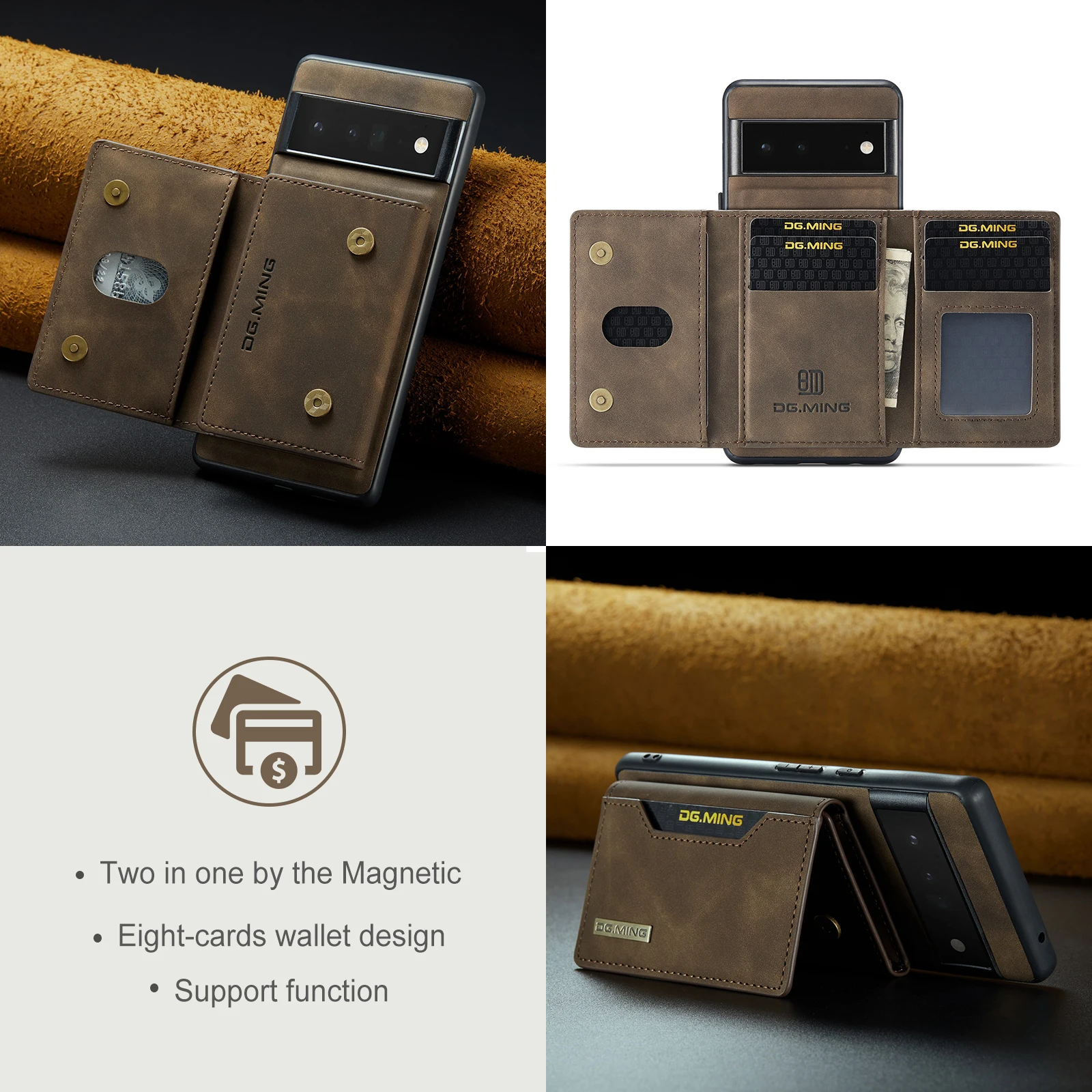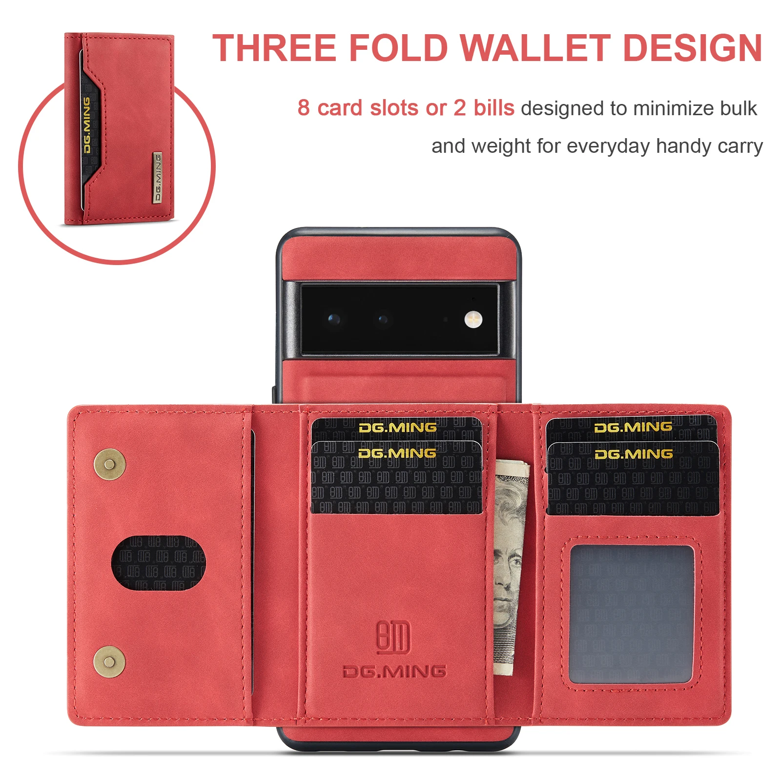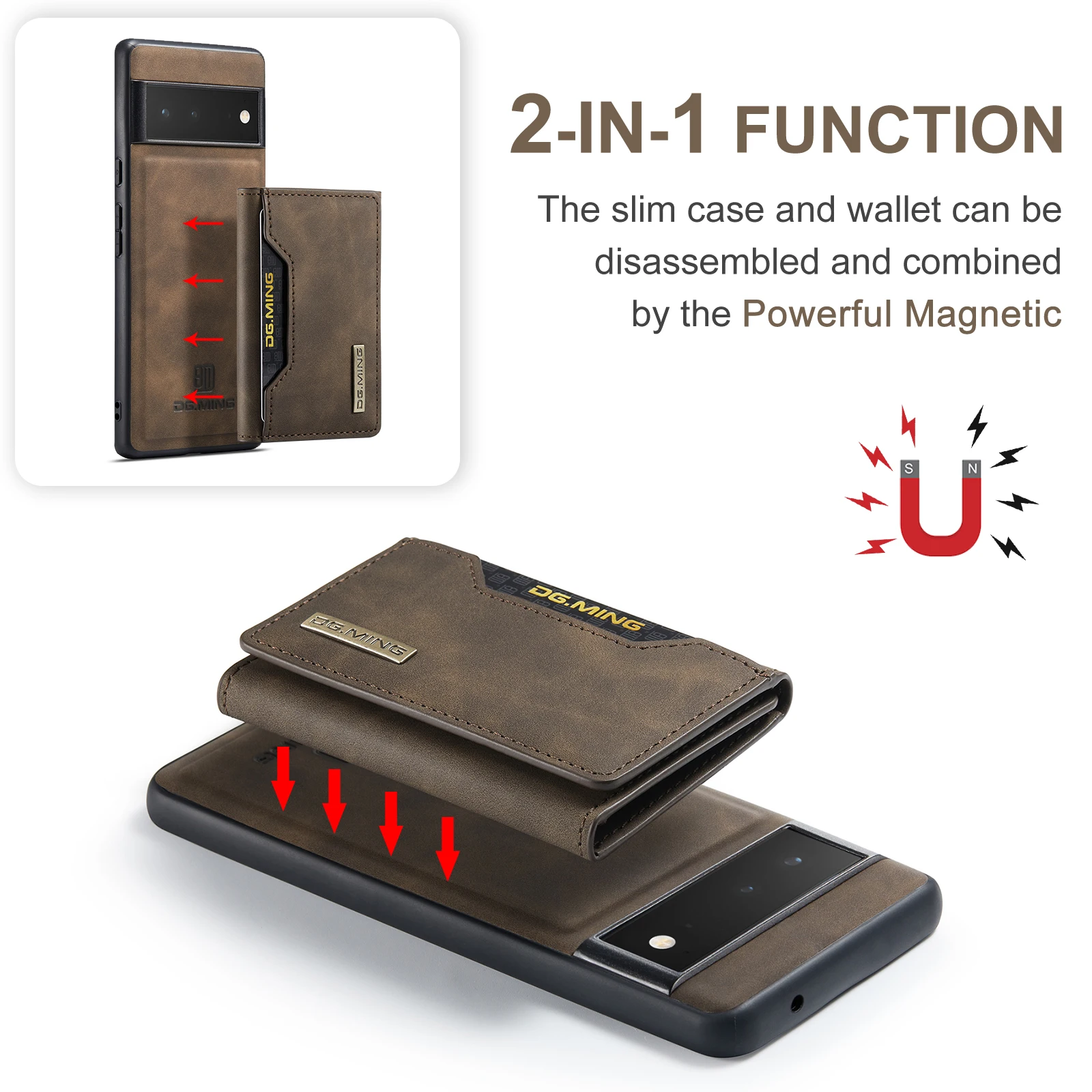 Cartera de teléfono 2 en 1, funda trasera Separable magnética de cuero PU con ranura para tarjeta, soporte, monedero para Google Pixel 7, 6 Pro, 6A, 5A