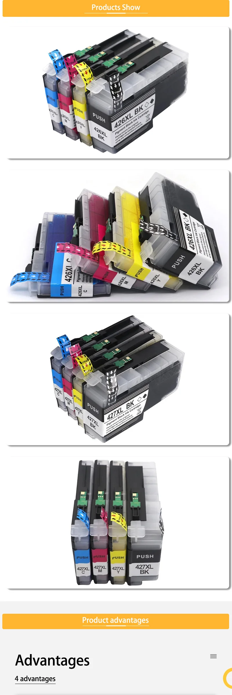 LC424 LC426 LC427 LC-424 LC-426 LC427XL Cartucho de jet de tinta compatible de primera calidad para Brother MFC-J4340DW J1200DW J5955DW J4335DW