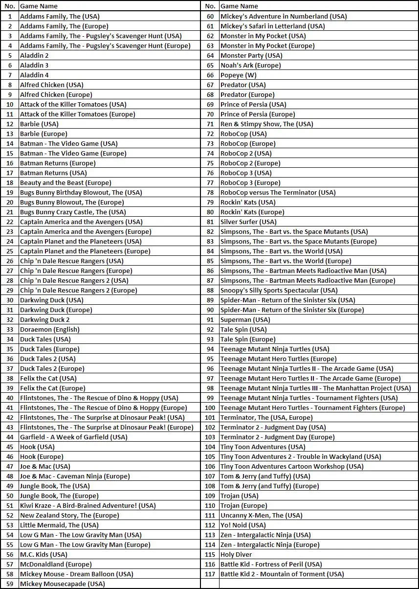 Comprar Cartucho de juego 117 en 1 para NES, colección de dibujos animados de la tarde, 72 pines