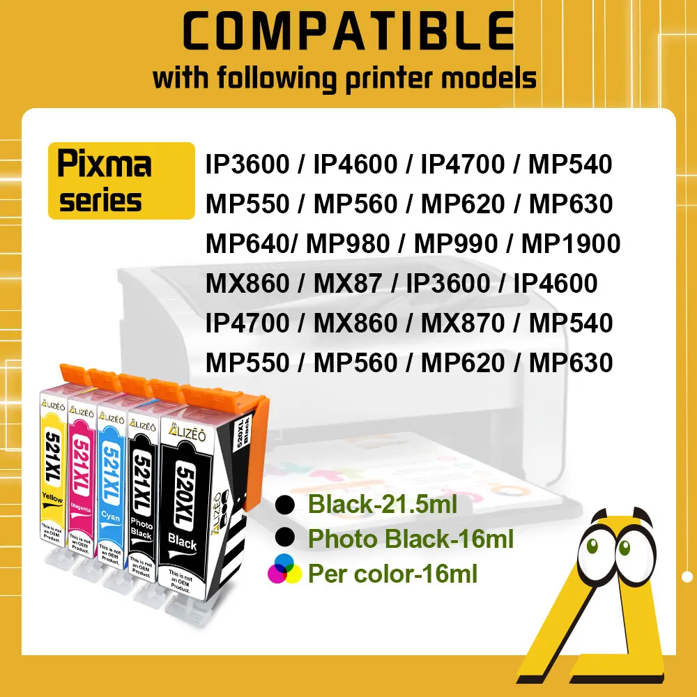 100% compatible con la impresora modelo Canon PGI 520 CLI 5121: