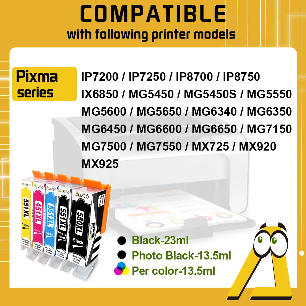 100% Compatible con impresora modelo Canon PGI 550 y CLI 551