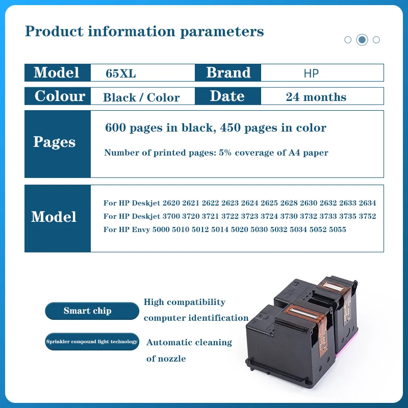 Número de cartucho: compatible con cartucho de tinta HP 65XL