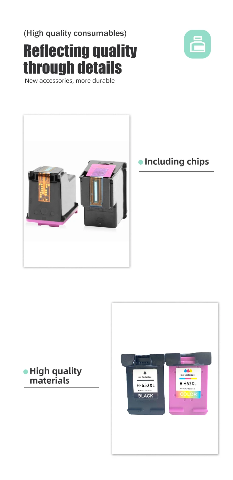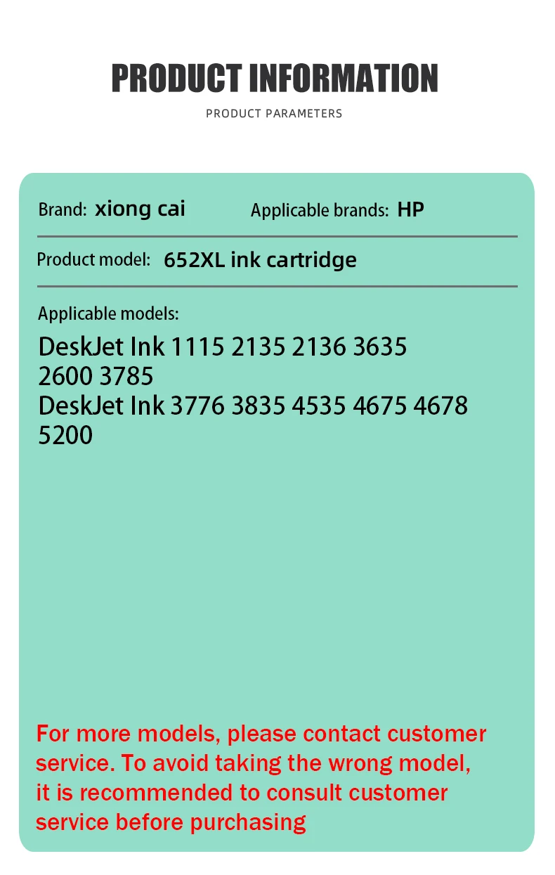Applicable brands:HPProduct type:652XL ink cartridgecolour:Black Colorcapacity:Black-18ML/Color-17MLApplicable models:For HP Deskjet 1115 1118 2135 2136 2138 3635 3636 3638 3838 3835