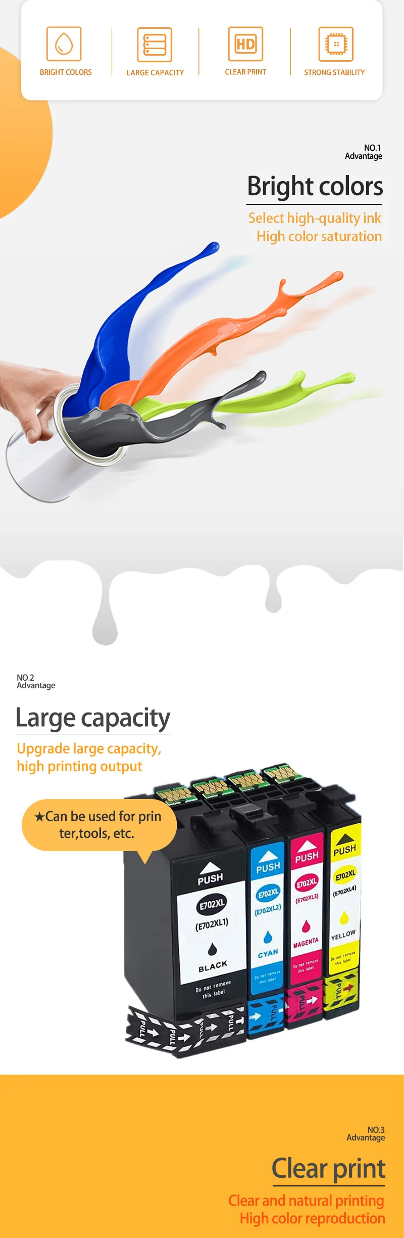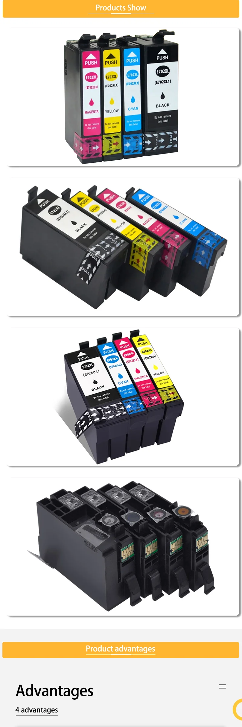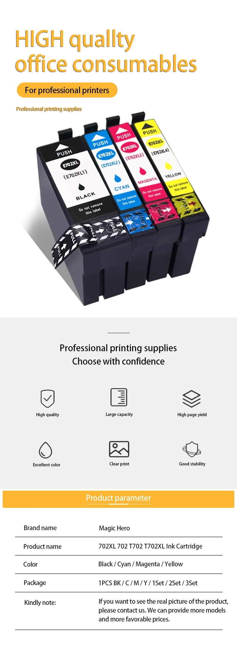 Cartucho de tinta compatible con colores 702XL 702 T702 T702XL para impresora Epson Workforce Pro WF-3720 WF-3725 WF-3730 WF-3733 DWF