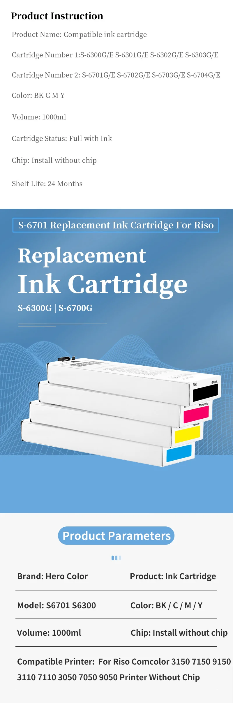 Cartucho de tinta Compatible para impresora Riso Comcolor 3150 7150 9150 3110 7110 3050 7050 con Chip