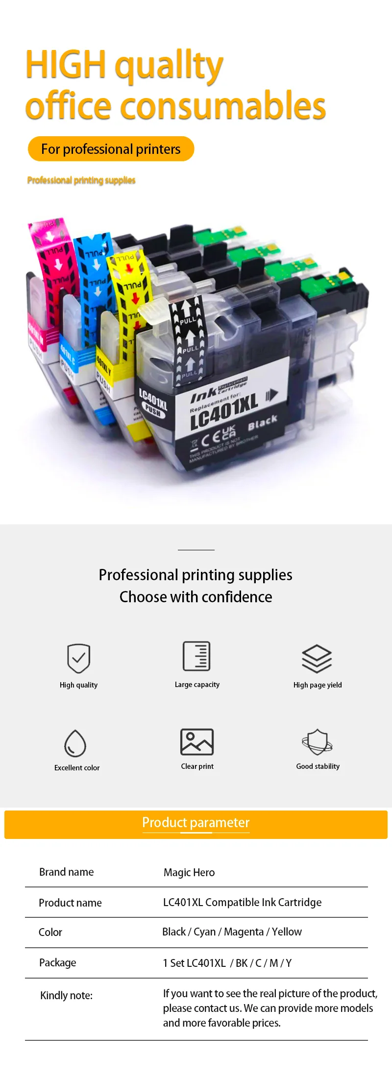 Cartucho de tinta compatible Magic Hero de alta capacidad LC401XL 401XL LC401