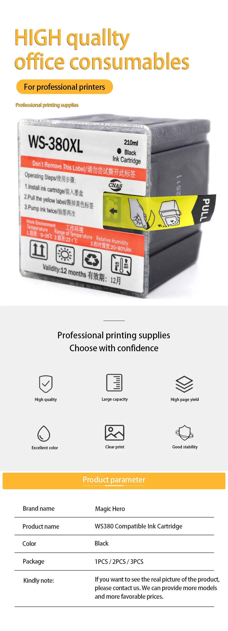 Cartucho de tinta Compatible con WS380 380XL 380 para impresora Epson Plotter, máquina de patrones de papel Pro H6 H8 H7 H9 HB XL V IoT Tablet