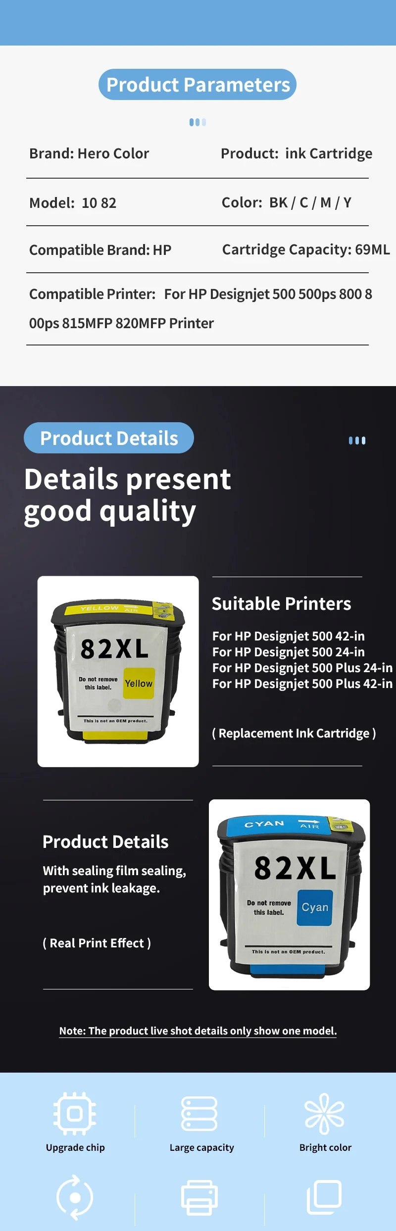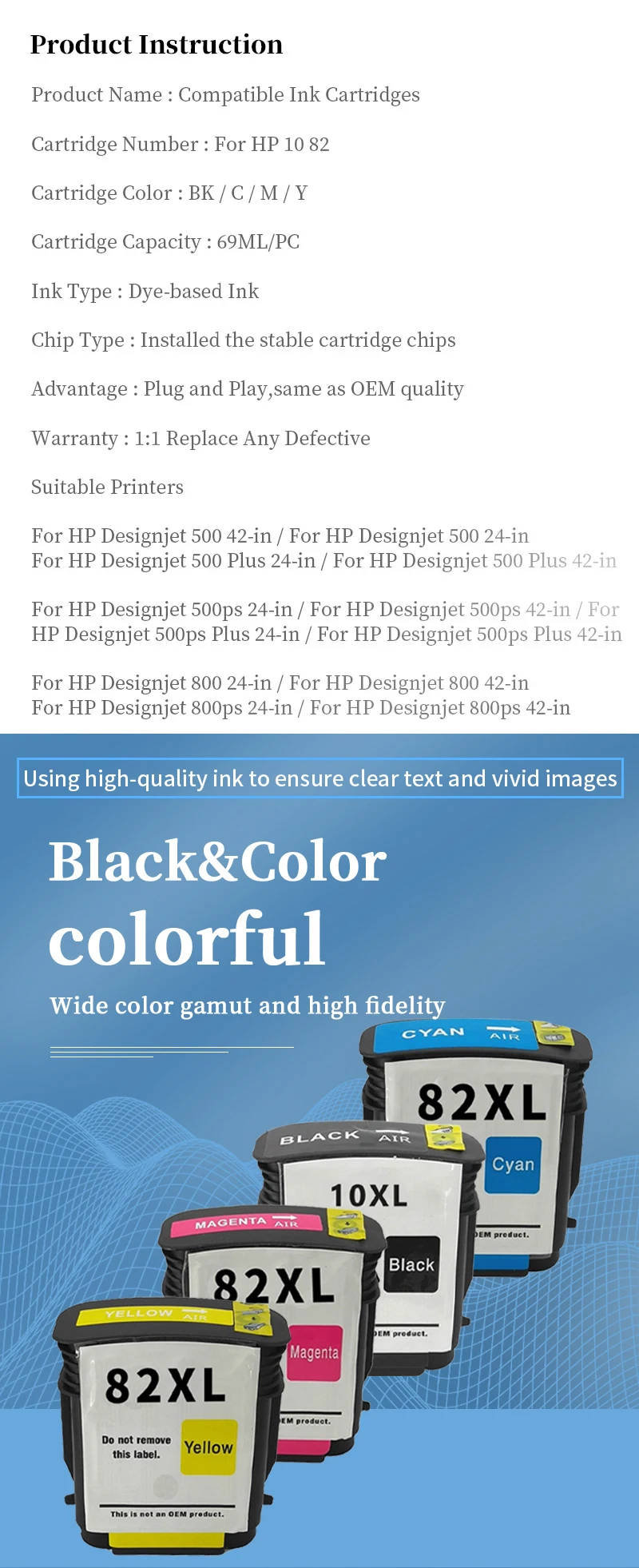 Cartucho de tinta HP 10 82 Compatible con impresora HP Designjet 500 500ps 800 800ps 815MFP 820MFP