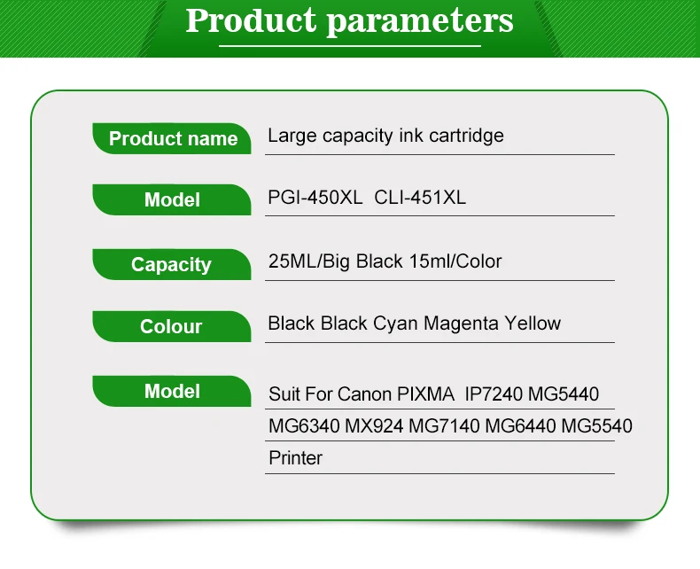 Cartucho PGI-450 PGI450 CLI451 PGI450 para Canon PIXMA MG5440 MG6340 MG6440 MG7140 MG7540