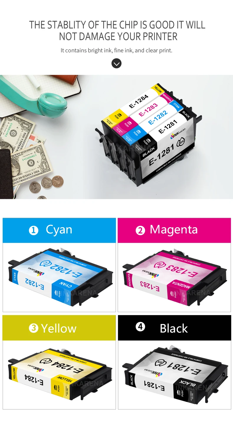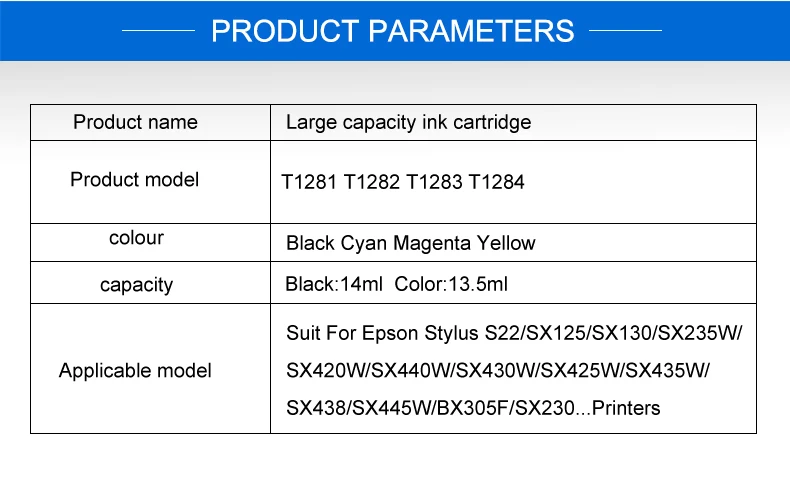 4 Uds. Para Cartucho de tinta Compatible Epson T1281 para EPSON Stylus S22 SX125 SX130 SX230 SX235W