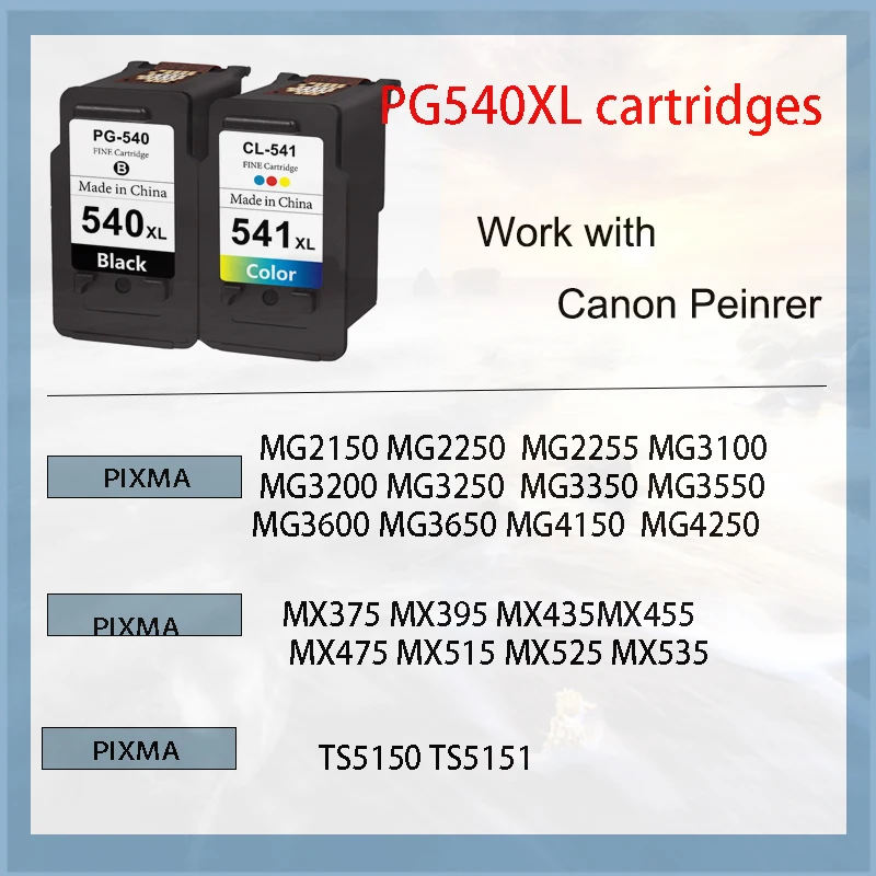 Cartucho de tinta pg540 cl541 Compatible con cartucho pixma de impresora canon MG3600 MG3650 MG4200 MG4250 MX475 MX520 MX525 TS5150 5151
