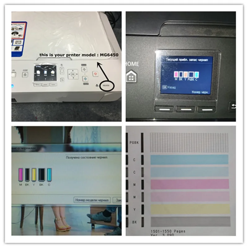 El paquete incluye:1 Juego (5 piezas) de cartucho de tinta recargable con chips; 1 piezas manual para la instalación;
