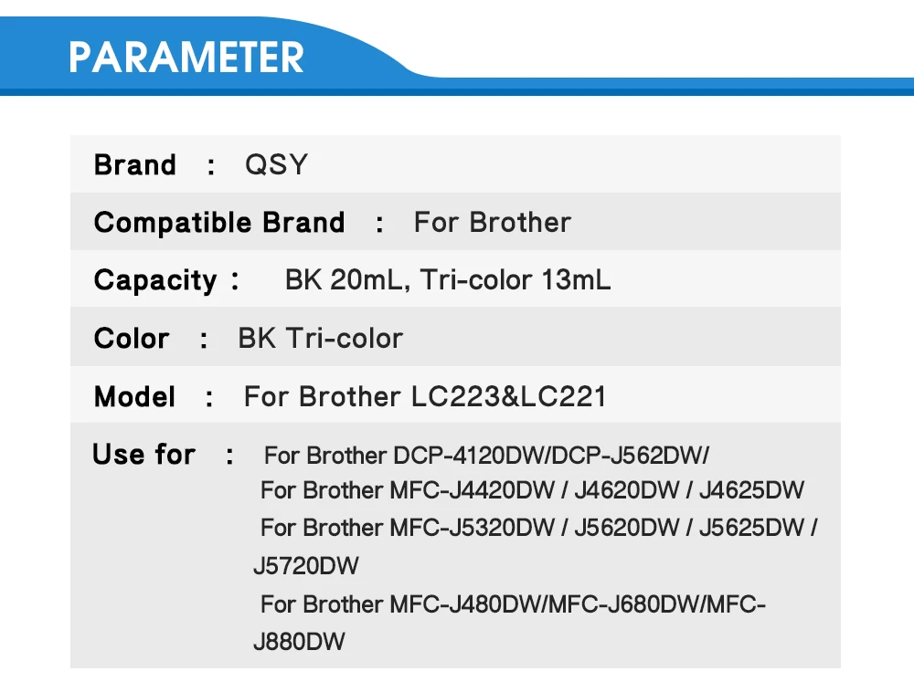 Cartucho de tinta LC 223XL 223 100% compatible para impresora Brother