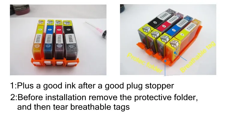 El paquete incluye:1 Juego (6 piezas) cartucho de tinta recargable vacía con chips; 1 piezas manual para la instalación; 4 piezas de junta de goma hermética Circular para hacer más cerca entre el cabezal de la impresora y el cartucho de tinta.