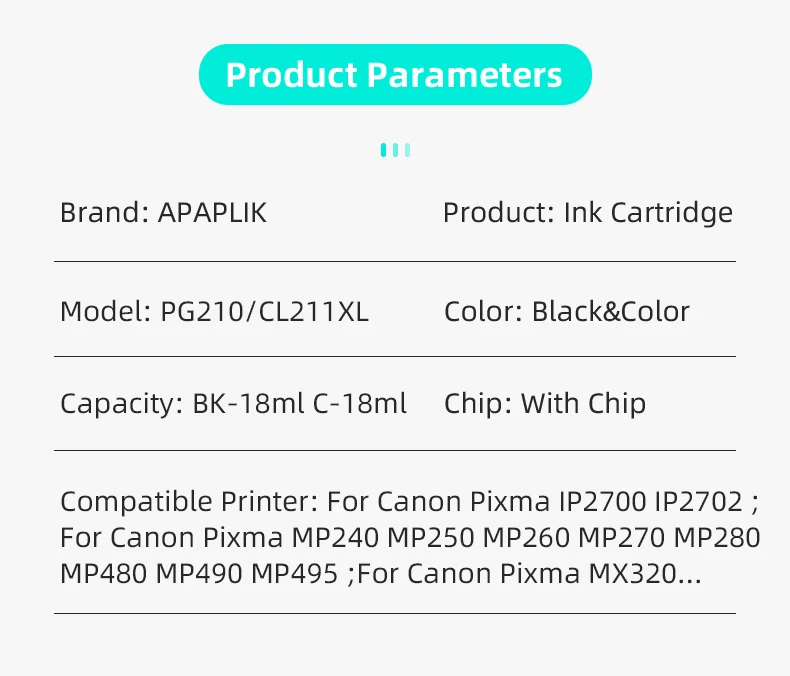 Cartucho de tinta recargable APAPLIK PG-210 CL-211 para Canon PG210 pg 210 211 Pixma IP2700 IP2702 MP240 MP250 MP260 MP270