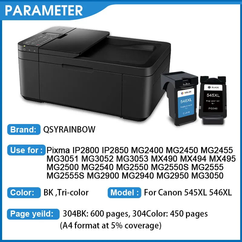 Comprar Cartucho de tinta remanufacturado de color QSYRAINBOW PG 545 CL 546 para impresoras de inyección de tinta Canon PIXMA iP2850 MX495 MG2950