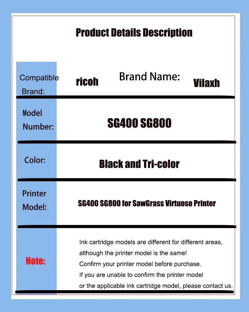Comprar Cartucho de tinta de sublimación Vilaxh SG400 para impresora Ricoh, GC41, savgrass, SG400, SG800, SG400NA, SG400EU, Aficio SG2010, SG2100