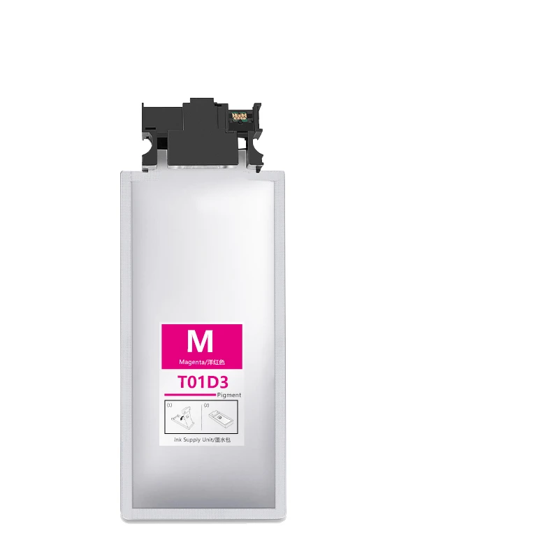 4: ¿Cuál es el tipo de esta bolsa de tinta? Es una bolsa de tinta de uso único con chip de un solo uso y tinta pigmentada de secado rápido. Se puede instalar e imprimir directamente.