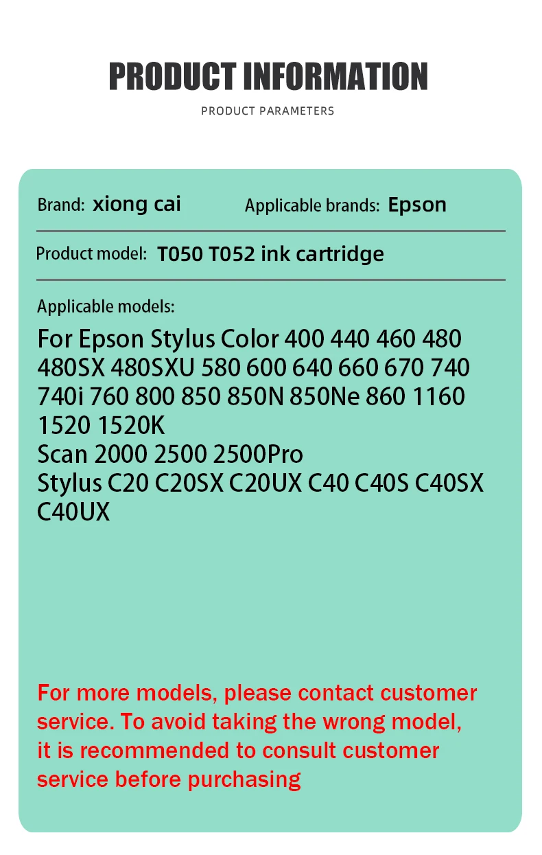 Nota bondadosa: según el modelo del cartucho de tinta original que se va a comprar (modelo de cartucho usado anteriormente), no lo haga directamente según el modelo de impresora, ya que el mismo modelo de impresora, diferentes regiones pueden usar diferentes modelos de cartucho. Si tiene alguna duda, comuníquese con nosotros para recibir asesoramiento a tiempo. ¡Gracias!