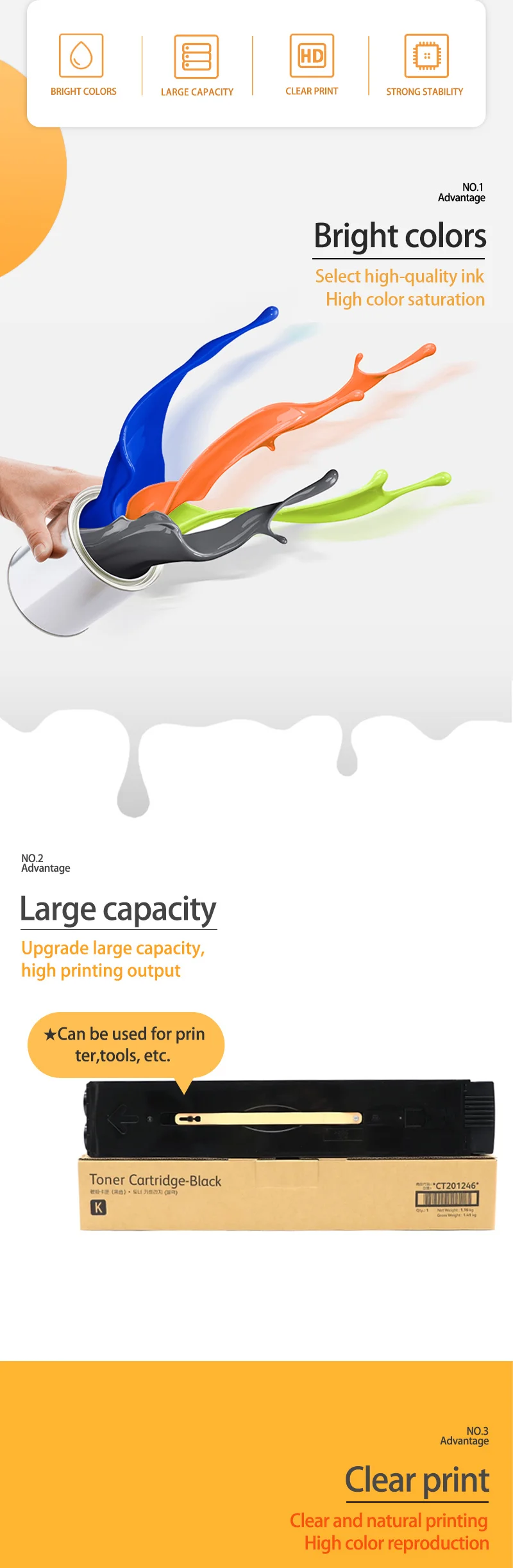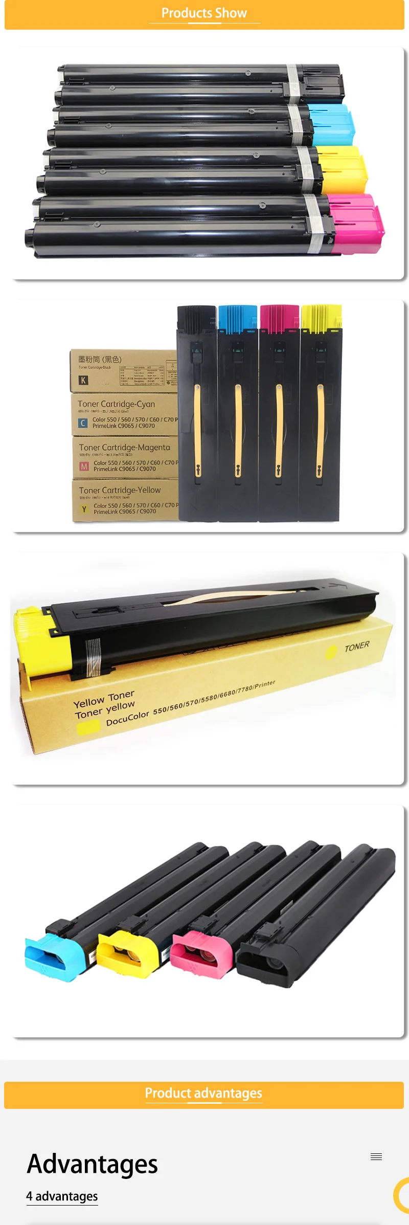 Nota importante: dado que los diferentes países usan diferentes versiones de chips, indíquenos su número de cartucho de tóner y versión de CHIP al comprar Nombre del producto: cartucho de tóner Modelo del producto: C550 Página impresa: 27000 páginas 【 papel A4, prueba de cobertura 5% 】 Impresora compatible: compatible con Xerox DocuColor C550 C560 C570 C60 C70 ApeosPort-IV/V C5580 6680 7780
