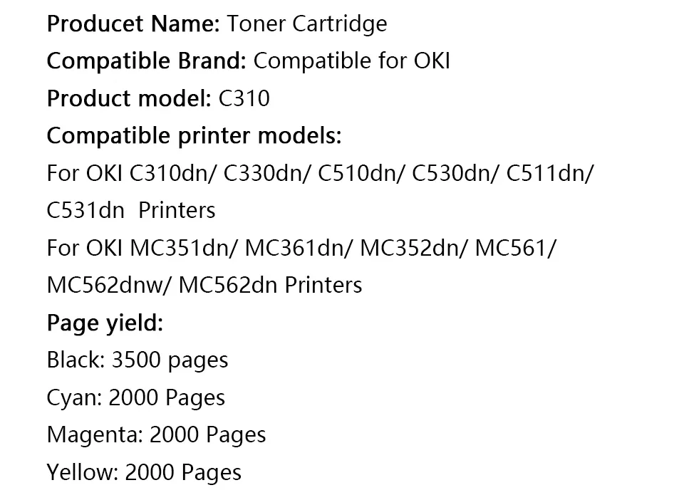 Cartucho de tóner Compatible con impresora láser OKI C310, C310dn, C312dn, C330, C331dn, MC351, MC352dn, MC362dn, MC361