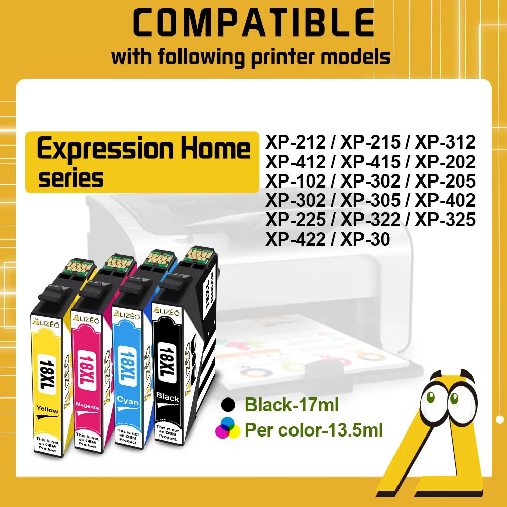 Comprar Cartuchos de tinta 1811 XL para impresora EPSON 18XL T1811 T1814 XP-215 XP-315 XP-415 XP-212 XP-33 XP-225 322 325 422 T18XL