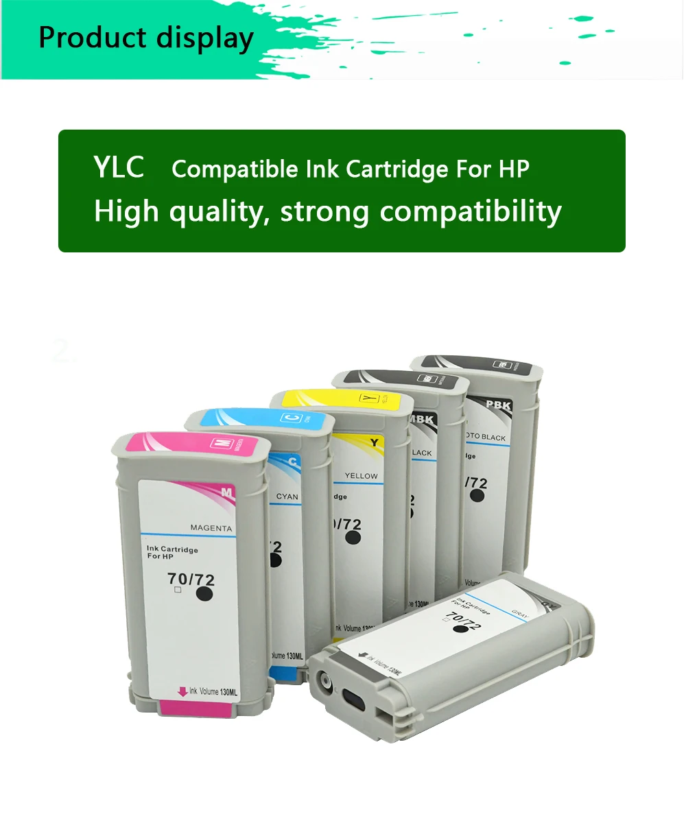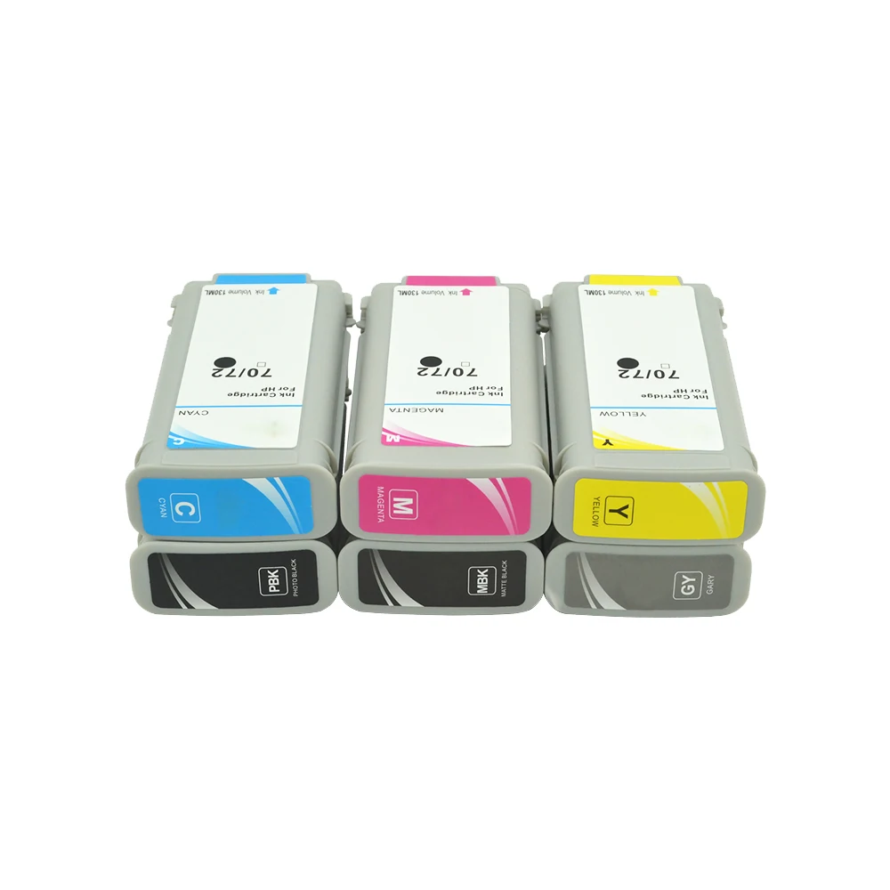 Para HP72 PBK / MBK / C / Y / M / GY cartuchos compatiblesEste paquete incluye:1 PBlack cartucho compatible con HP 72 cartucho PBK chip (130ml)1 cartucho de tinta compatible MBlack con chip HP 72 MBK (130ml)1 cartucho de tinta compatible gris con HP 72 chip GY (130ml)1 cartucho de tinta compatible con cian con cartucho HP 72 chip C (130ml)1 cartucho de tinta compatible con Magenta cartucho HP 72 M chip (130ml)1 cartucho de tinta compatible amarillo con chip de cartucho HP 72 (130ml)Ten en cuenta los diferentes códigos de cartucho para el mismo modelo de impresora en diferentes regiones. Comprueba el código del cartucho original antes de comprar. No solo revisa el modelo de la impresora. El código de dibujos animados (HP72) es la primera opción para el transporte. Gracias, No se aceptará ninguna disputa que surja de esto.Adecuado modelo de impresora:Para impresora HP DesignJet T610 T620Para impresora HP DesignJet T770 T790 T795Para impresora HP DesignJet T1100 T1100psPara impresora HP DesignJet T1120 T1120psAdecuado para impresora HP DesignJet T1200 T1300 T2300Para DesignJet Cartera de HP DesignJet-T1120 HD T1200 HD T1120 impresora