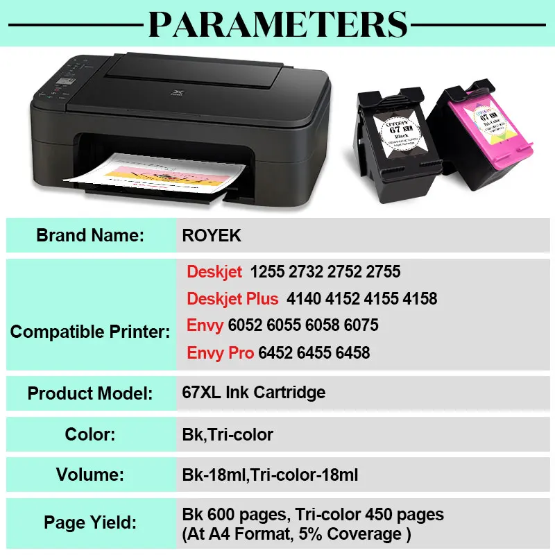 Comprar Cartuchos de tinta ROYEK 67XL 67XL de repuesto para impresoras HP 67 67XL para HP DeskJet 2700 2700e 2755e 2755 4155e 4155