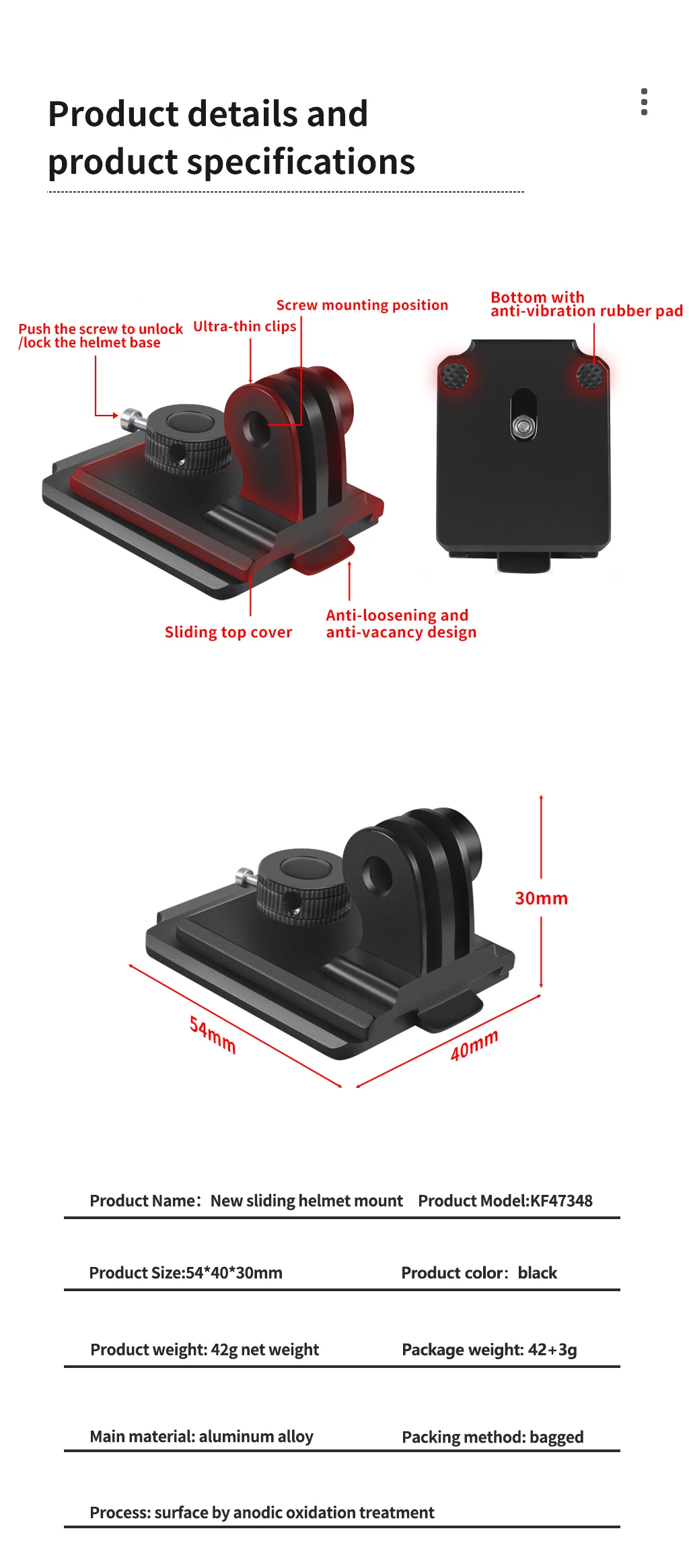 Solo el soporte de la base o los tornillos, no incluye la cámara, el estuche ni el casco.