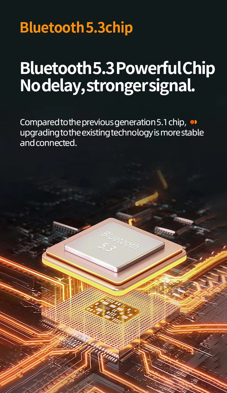 4.Potente chip 5.3: chip Bluetooth 5.3, rendimiento y calidad estables, bajo consumo de energía y batería de larga duración.