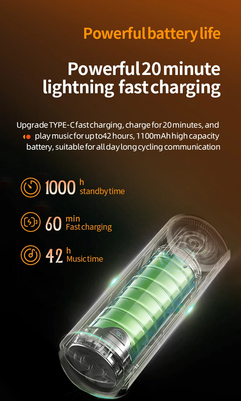 2.Batería incorporada de alta capacidad, tiempo de espera ultralargo: la batería de 1100 mAh proporciona 170 horas de reproducción continua con un sistema inteligente de administración de energía, y los dispositivos electrónicos de bajo consumo mejoran en gran medida el tiempo de uso, no más problemas de carga frecuentes, 2 horas de carga rápida proporcionan 1000 horas de duración de la batería.