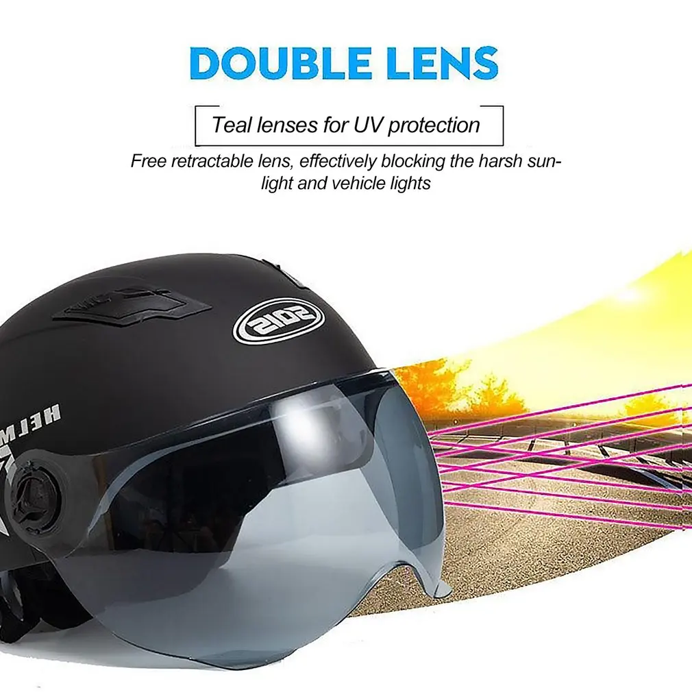 Comprar Casco de motocicleta con visera de doble lente para hombre y mujer, protector facial para bicicleta eléctrica de carretera, Scooter, de verano