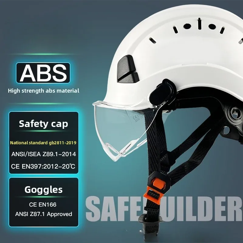 Casco de seguridad para construcción CE con visera, gafas integradas para ingeniero, casco duro ABS, gorra de trabajo Industrial ANSI, protección para la cabeza, nuevo