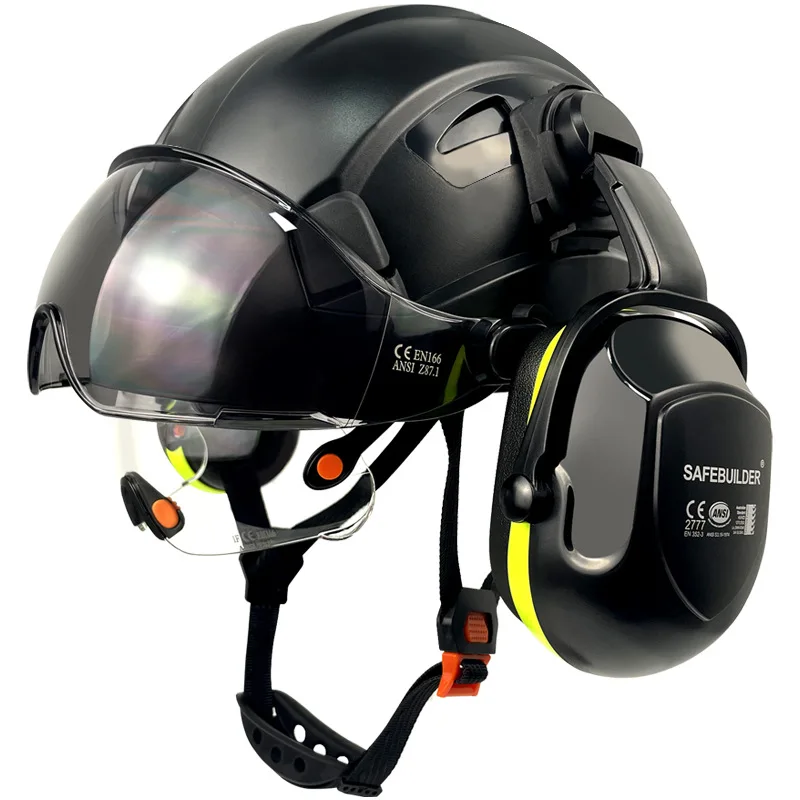 Casco de seguridad para construcción CE con visera, gafas integradas, orejeras para casco duro de ingeniero, gorro de trabajo Industrial ANSI, protección para la cabeza