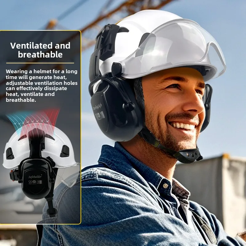 Comprar Casco de seguridad para construcción con visera, gafas integradas, orejeras para ingeniero, casco duro, gorro de trabajo Industrial, protección para la cabeza