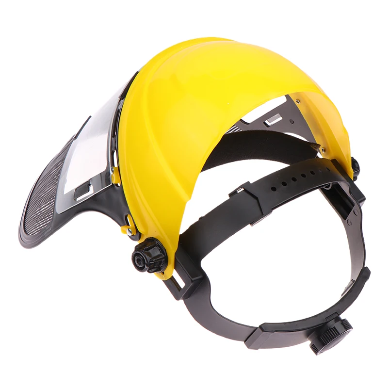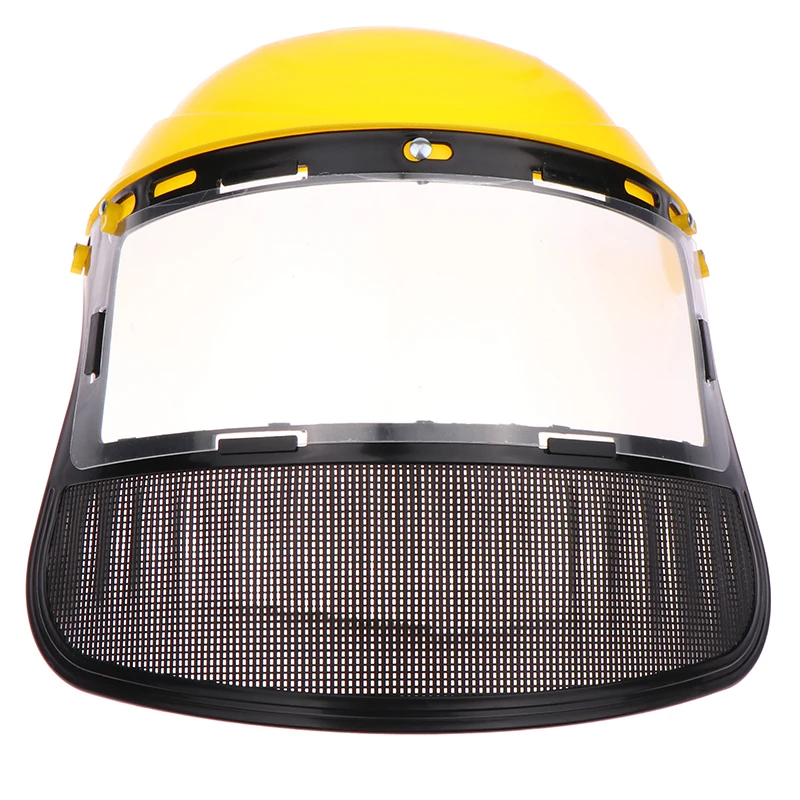 Comprar Casco de seguridad para cortadora de césped de jardín, sombrero con máscara protectora de malla de cara completa para registro, desbrozadora, protección forestal