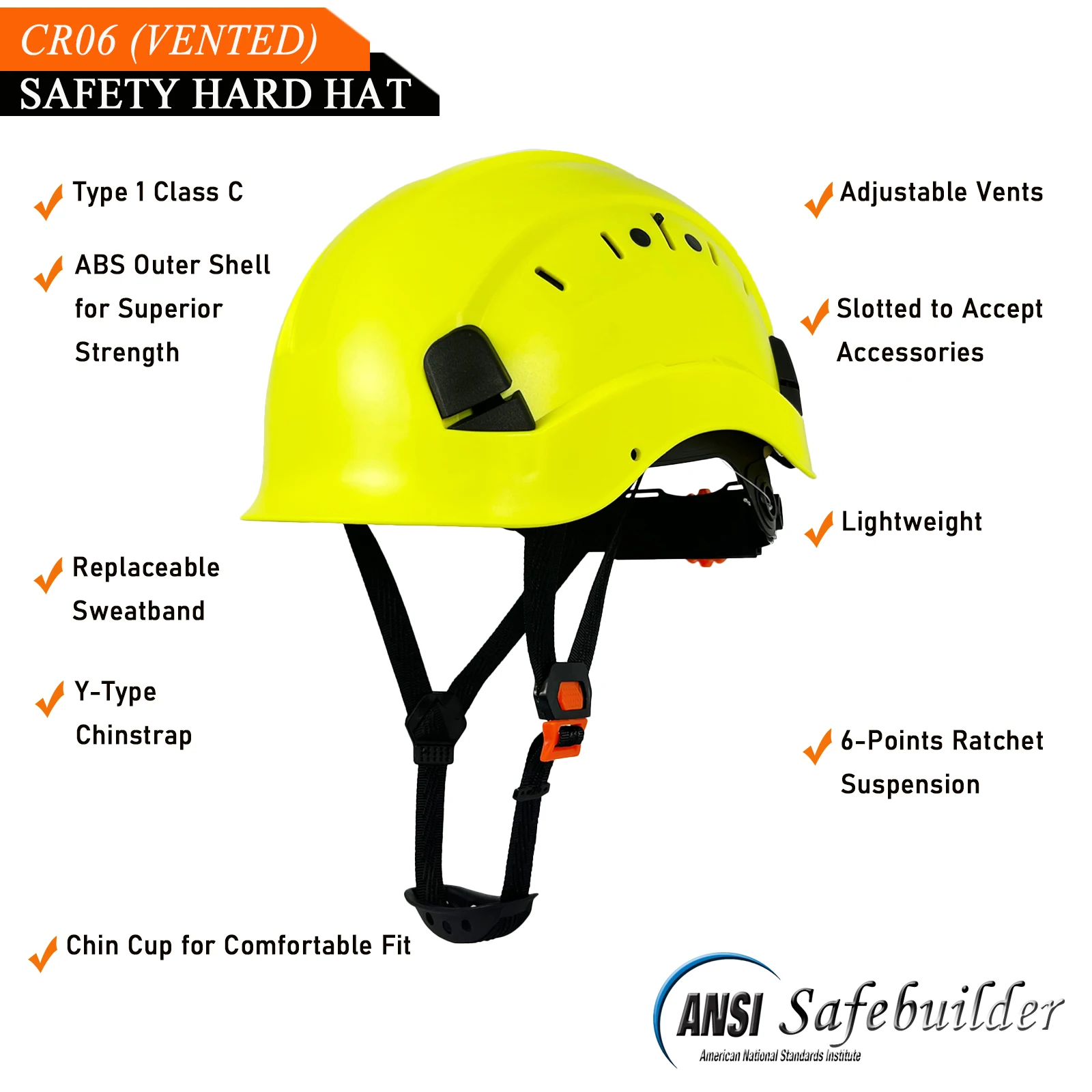 【Certificados aprobados】: SAFEBUILDER Work Hard Hat cumple con los estándares ANSI Z89.1-2014, Tipo 1 Clase C, también cumple con los EN397-2012 CE,-20 ℃. Las Viseras con CE EN166 y ANSI Z87.1 Aprobado. Puede ser utilizado en construcción, industrial, decoración, trabajo al aire libre, rescate, electricidad, minería y otros lugares para obtener protección de la cabeza, mejorar el nivel de seguridad laboral y los trabajadores obtener tiempo de trabajo diario feliz.